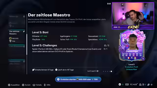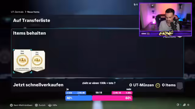 05:21:59Nach Erreichen von 12 Siegen erhält der Streamer diverse Belohnungen, darunter zwei 93 Plus Picks, ein Premium Serie A Tots, eine 86er Pack und 175.000 Münzen. Bei den Picks entscheidet er sich für Palestra als Rechtsverteidiger und ist mit den Ergebnissen zufrieden. Bei den Packs enttäuscht er hingegen, da keine hochwertigen Spieler darin sind. Er macht einen Icon Pick, aber auch hier sind die Ergebnisse nicht überzeugend. Trotzdem zeigt er sich sportlich und erwähnt, dass es bei FIFA immer auch um Glück geht.