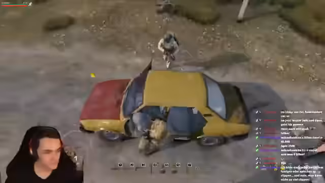 02:47:16Ein Kampf mit anderen Spielern entbrennt, wobei der Streamer Munition gegen Gegner einsetzt. Er tötet einen Gegner mit einem Kopfschuss, wird aber selbst am Bein verletzt. Aufgrund der Verletzung muss er sein Bandageninventar verwenden. Während des Kampfes wird sein Fahrzeug stark beschädigt, wobei mehrere Reifen zerstört werden. Die Lage kritisiert sich, da das Fahrzeug kaum noch fahrbar ist und die Spieler weiterhin bedroht werden.