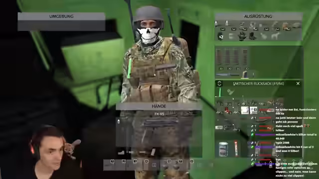 04:04:53Der Streamer konzentriert sich darauf, in den Militärcamps nützliche Gegenstände zu finden. Er sammelt verschiedene Kleidungsstücke, darunter eine Plattenweste und eine taktische Unterjacke. Außerdem sucht er nach Waffenteilen wie Visieren und Magazinen. Beim Stöbern in den Camps entdeckt er auch tote Gegner, von denen er deren Ausrüstung looten kann. Gleichzeitig bleibt er wachsam, da weitere Gegner in der Gegend aktiv sein könnten.