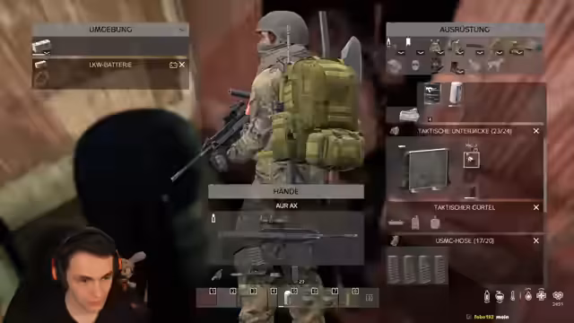00:12:52Die Gruppe fährt zur Militärbasis, wo sie auf andere Spieler treffen. Es kommt zu einem Feuergefecht, in dem sie zwei Spieler ausschalten. Anschließend looten sie die gefallenen Gegner und finden wertvolle Gegenstände wie M4s und Magazine. Der Streamer sortiert seine Ausrüstung und wirft überflüssige Gegenstände weg, während er darauf achtet, dass sein Fahrzeug nicht spawnt. Er stellt fest, dass sein Sniper nicht mehr auffindbar ist, was ihn verärgert.