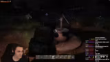 02:35:24Auf der Suche nach Ersatzreifen durchstreift der Streamer verschiedene Militärobjekte und stößt auf mehrere beschädigte Fahrzeuge. Er findet einen M3S, aber dieser ist unbrauchbar. Beim Versuch, ein anderes Fahrzeug zu orten, gerät er in eine schwierige Position, da sein Auto nur noch auf einem Rad fährt und die Lenkung beeinträchtigt ist. Er muss improvisieren, um das Fahrzeug weiter bewegen zu können, und trifft auf mehrere andere Spieler, die ebenfalls in der Gegend unterwegs sind.