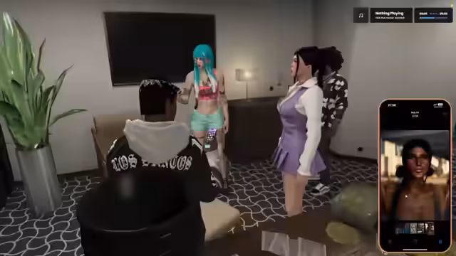 02:54:47Ein neuer Charakter namens Chantal tritt in die Szene und interagiert mit dem Streamer. Es kommt zu humorvollen Annäherungsversuchen und Gesprächen über den Besuch eines exotischen Kleidungsgeschäfts. Gleichzeitig bemüht sich der Streamer, eine unterhaltungsreiche Zeit mit Chantal zu verbringen, wobei sich Spannungen zwischen den Frauen aufbauen.