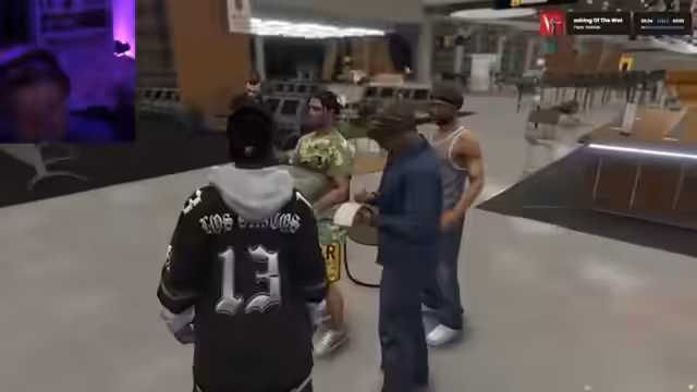 02:07:49Im weiteren Verlauf des Streams werden erste Rollenspiel-Szenen inszeniert. Die Figur Ranjit trifft im Flughafen auf mehrere Charaktere, unter anderem einen vermutlichen Drogendealer namens Herr Brox. Es entstehen Dialoge voller Provokationen und andeutungsreicher Kommentare, die den Beginn einer komplexen und dynamischen Rollenspiel-Situation zwischen den Charakteren einläuten.