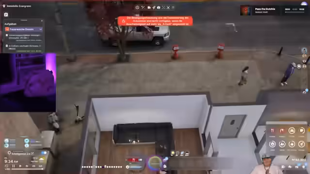 00:19:21Nach dem Feierabend wird angedeutet, dass es im Park und zu Hause Auseinandersetzungen geben wird. Es wird betont, dass keine Hose getragen wird und bei einer Bewegung der Schwanz sichtbar wäre. Nach der Ankunft zu Hause wird kritisiert, dass kein Essen vorbereitet ist. Es folgen Vorwürfe, dass nach einer 8-Stunden-Schicht selbst gekocht werden muss. Es wird gefragt, wie man aus der Situation herauskommt und gescherzt, ob die Polizei gerufen werden soll. Naomi wird gegrüßt und als schwach bezeichnet. Es wird angedeutet, dass in ihr etwas heranwächst und das als Weltwunder bezeichnet. Es wird spekuliert, dass Tobias im Gefängnis ein Handy hat und mit Charlotte schreibt. Der Wunsch nach einer Waffe wird geäußert, um sich gegen die Polizei zu wehren, und die Idee eines realistischen Lebenssimulators als Krimineller im GTA-Stil wird diskutiert. Petey wird als Wärter beschrieben, der Pornos schaut und Arschkontrollen durchführt.