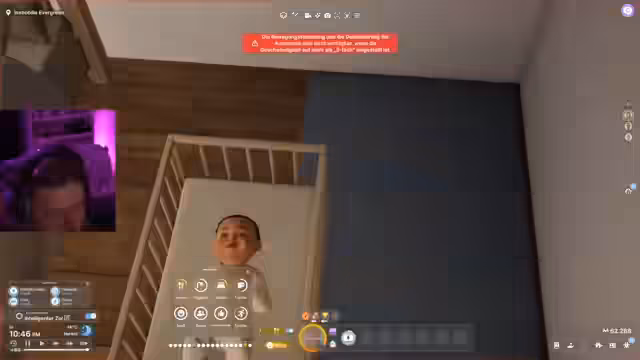 00:06:32Der Stream beginnt mit persönlichen Bemerkungen zur körperlichen Verfassung des Streamers, der unter Sonnenbrand leidet und sein ungewöhnliches Outfit erwähnt. Es werden die Anwesenheiten anderer Figuren wie Naomi, Charlotte und ein Kind, genannt Jeremy Pascal, angesprochen, die zum Zeitpunkt des Streams noch nicht voll im Fokus stehen. Das Setting ist eine sogenannte Patchwork-Asiwohnung, in der eine komplexe Beziehungssituation besteht.