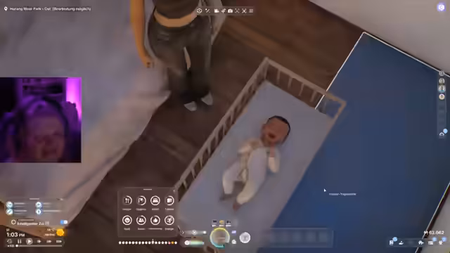 00:42:14Es wird behauptet, dass ein Kind nicht wie er aussieht und Charlotte wird beschuldigt, von einem ihrer Sims Knights Unterwäsche geschickt bekommen zu haben. Sie wird als Fremdgeherin bezeichnet. Es wird ironisch kommentiert, wie es sich anfühlt, Vollzeit-Familienvater zu sein und keine Kraft mehr zu haben. Naomi wird beobachtet, wie sie ständig im Taxi unterwegs ist und es wird vermutet, dass sie etwas mit dem Taxifahrer anfängt. Es wird kritisiert, dass der Fernseher dreckig ist. Es wird gesagt, dass das Kind schreit, weil es vergiftet wird und sich bei ihm einschleimt. Es wird angedeutet, dass bald drei Frauen im Leben des Streamers sein werden. Charlotte wird nach dem Absender eines Pakets gefragt und bei Schuhen oder Blumen Fremdgehen unterstellt. Siffly Young wird als Absender genannt und Charlotte erneut als Fremdgeherin bezeichnet. Es wird über wahre Liebe und Geld gesprochen. Es wird ein Bad Boy gefordert und angedeutet, dass jemand rangenommen und gespeilt wird wie ein Stück Holz.