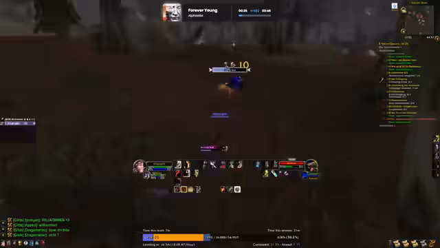 01:51:57In diesem Abschnitt bittet der Streamer die Zuschauer, den Chat zu lesen, da er selbst aufgrund seiner Erkrankung dazu nicht in der Lage ist. Er konzentriert sich voll und ganz auf das Spielen und kommentiert seinen Fortschritt beim Leveln in World of Warcraft. Er gibt eine Vorhersage ab, dass er drei Stunden benötigen werde, um sein Ziel zu erreichen. Interaktionen im Chat und mit Followern beschränken sich auf kurze Dankesnachrichten und wenig Personalisierung, da er komplett in das Gameplay vertieft ist.