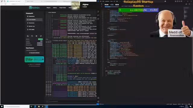 05:47:40Es wird an der Optimierung des Community-Servers gearbeitet, indem Verkehr und parkende Autos reduziert und Blips verkleinert werden. Der Streamer arbeitet daran, das Standardbanking zu verbessern und behebt Probleme mit dem Targetmenü. Es wird festgestellt, dass beide Bankskripte Informationen aus der richtigen Tabelle ziehen. Es wird nach der Übersetzung für das Banking-System gesucht, um Anpassungen vorzunehmen, wie z.B. das Ändern von 'Dashboard' zu 'Startseite' und 'Transactions' zu 'Bankaktivität'. Der Streamer experimentiert mit CSS-Dateien, um das Farbschema auf Orange zu ändern, was die Serverfarbe ist, und das Logo des Skriptherstellers zu entfernen, da es im RP nichts zu suchen hat. Er bittet um Hilfe bei Designanpassungen, da er sich mit HTML und Design überfordert fühlt und Unterstützung von Designern sucht.