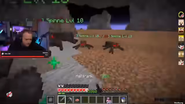 03:09:26Die Gruppe beschließt, gemeinsam für eine Stunde Gold zu farmen, um Ressourcen für die neue Dungeon-Ebene zu sammeln. Nach der Farmphase geht es in den Dungeon. Die ersten Gegner, riesige Skelette und Spinnen, erweisen sich als extrem gefährlich, da sie den Spieler mit einem Schlag töten können (One-Hit-Kills). Die Erkundung gestaltet sich schwierig und erfordert vorsichtiges Vorgehen.