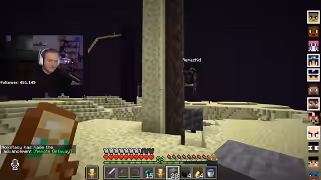 04:40:06Letzte Vorbereitungen für den End-Eintritt: Diskussionen über die Mitnahme von Lytras und das Verbot von Hammer-Nutzung gegen den Drachen. Einige Spieler fordern Schlafenszeiten zur Zeitoptimierung, während andere fehlende Raketen und Ressourcen beklagen. Es kommt zu Uneinigkeit über das Mitnehmen von Elytras – Absprachen besagen, dass diese nicht geliehen, sondern selbst gefunden werden müssen. Die Gruppe organisiert den letzten Anlauf für den End-Kampf.