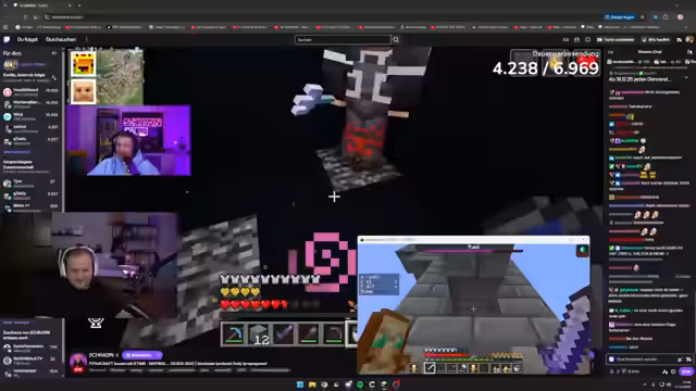 00:00:21Der Streamer startet den Livestream, begrüßt den Chat und erwähnt einen vorangegangenen Offday. Es folgt die entscheidende Ankündigung: Der Enderdrache für FitnaCraft Tag 11 ist offiziell für 20 Uhr geplant. Der Streamer korrigiert dabei den im Titel genannten Zeitpunkt (18 Uhr) und betont die Korrektheit der 20-Uhr-Planung unter Verweis auf seine Information aus der internen WhatsApp-Gruppe. Zeitgleich wird die unmittelbare Vorbereitung auf das Endereignis diskutiert, einschließlich der Notwendigkeit, Raketen für die Mobilität und Enderchesten für die Lagerung von Gegenständen mitzubringen. Ein aktueller Blick auf das Gelände zeigt einen unerklärlichen Krater in der Nähe des Grundstücks, der Besorgnis und Verwunderung beim Streamer und den Zuschauern auslöst.