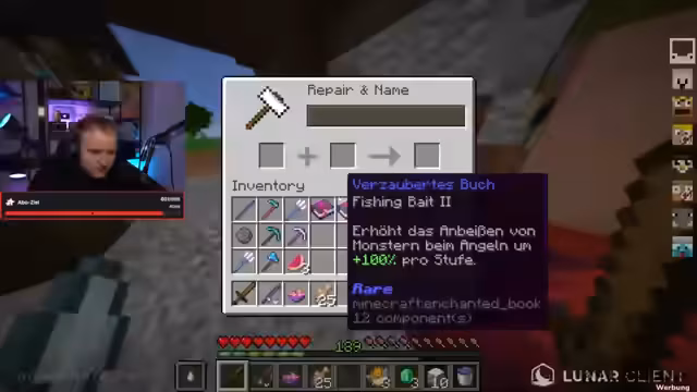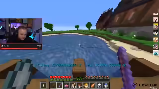 03:36:52Ein wichtiges Angel-Upgrade wird durchgeführt. Die Spitzhacke wird auf Legendary-Status mit 20 Block-Break-Speed geupgraded. Der Fokus verlagert sich komplett auf das Angeln. Es wird berichtet, dass die Angel bereits Fishing Luck 6 erreicht hat. Die Spieler sind sehr motiviert und planen, verschiedene Drops zu fischen, da dies eine zentrale Aktivität darstellt.