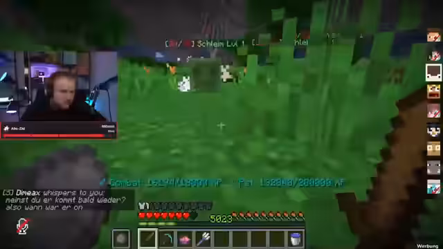 05:08:41Das Hauptziel des Dungeons wird erreicht: der Spawn des 'Axelotl'-Bosses. Dies löst eine Phase der intensiven Koordination und Aktion aus. Der Streamer kommuniziert live mit anderen Spielern über Discord, um die Jagd auf den Boss zu organisieren. Es kommt zu technischen Schwierigkeiten und Verwirrung, da der Boss anfangs nicht sichtbar ist. Der Streamer erforscht Methoden, wie man das Spawnen von Entities über das Spielmenü 'F3' verfolgen kann, um zukünftige Spawns besser zu planen. Letztendlich ist die Jagd durch das Verlassen eines Spielers gescheitert.