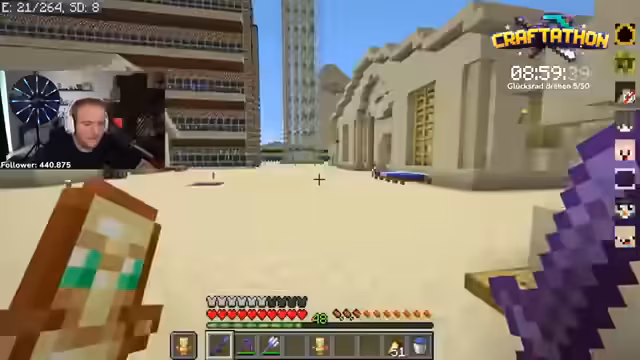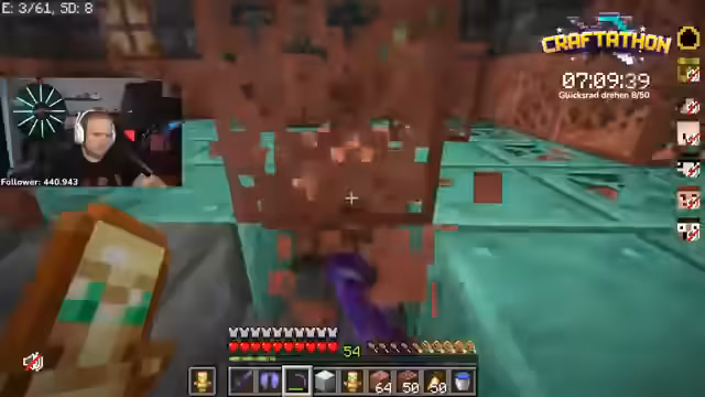 04:49:21Das Projekt zur Herstellung des Goloms ist aufgrund von Personalausfällen und dem Mangel an Kupferblocken gefährdet. Niki ist krank, Paul und Adi sind anderweitig beschäftigt, und Trimix kommt erst am Abend. Der Streamer muss das Projekt weitgehend alleine tragen, während die restlichen Teammitglieder fehlen. Um das Ziel zu erreichen, wird geplant, Blazes zu farmen und Kupferabbauevents durchzuführen, um die fehlenden Ressourcen zu beschaffen. Der Eventplan sieht ein Rennen vor, bei dem Teams um Kupferblöcke kämpfen, jedoch haben sich bisher noch keine Teams angemeldet, was die Durchführung gefährdet. Die zentrale Herausforderung bleibt die Beschaffung der fehlenden 40.000 bis 50.000 Kupferblöcke für die Antenne und den oberen Teil des Konstrukts.