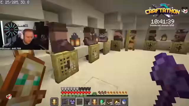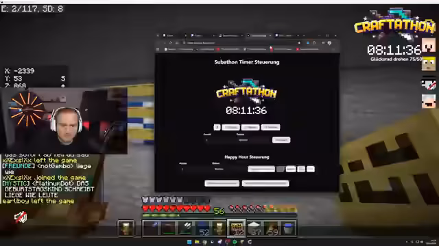 05:59:19Die Verwaltung und Planung der 'Sub-Wand' ist ein zentrales Thema. Diese Wand dient dazu, Unterstützer sichtbar zu machen, wobei die Höhe des Beitrags den Baustein bestimmt. Es werden die Regeln festgelegt: 5 Subs für Eisen, 10 für Lapis, 20 für Redstone, 50 für Emerald, 100 für Diamant und 200 für Netherit. Bei technischen Problemen mit der Timer-Website muss die manuelle Eingabe der Subs erfolgen, was den Streamer frustriert. Der Erfolg des Hype-Train-Level 9 und die Integration von Teilnehmern auf der Craft-Map unter dem Eiffelturm sind Meilensteine dieser Phase.