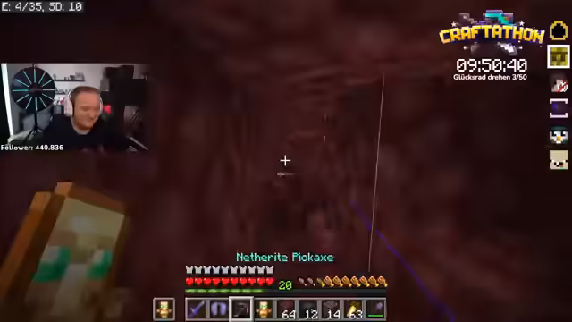 01:30:37Der Streamer erklärt das System der Sub-Bomb für seinen Channel: Pro Sub und Sub-Gift werden bestimmte Blöcke gespendet, bei einer 200er Sub-Bomb wird ein Netherite-Block erreicht. Der Streamer und sein Team arbeiten an einer Rüstung für den Spieler Early Boy, wofür sie u.a. Respiration- und Feather-Falling-Enchantments benötigen. Sie fühlen sich dabei ein bisschen betrogen, da der Aufwand größer ist als der Nutzen.