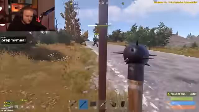 12:43:02Nachdem der Streamer feststellt, dass sein Boot und Ausrüstung von einem Spieler namens Max gestohlen wurde, konfrontiert er diesen über ein Sprachsystem. Er geht davon aus, dass Max mit dem gegnerischen Team 'Reapers' zusammenarbeitet und ihn getäuscht hat. Trotzdem versucht das Team, ihn zu jagen, wird jedoch von den stark bewaffneten Gegnern aus dem Weg geräumt, die sich mit fortgeschrittenen Waffen wie der F4-Schrotfluste auszeichnen.