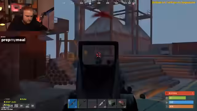 03:14:00Mit der neuen Entscheidung, die Öl-Rig anzugreifen, geht das Team sofort in die Offensive. Nachdem ein Teammitglied sein Motorrad wurde geklaut, kauft der Streamer schnell ein neues. Es wird beschlossen, die Öl-Rig zu attackieren, da die meiste Konkurrenz noch im Casino ist. Vor dem Aufbruch ins Monuments legt der Streamer Bärenfallen und plant den Einsatz seiner beiden roten Karten, um Türen zu öffnen und den Zugang zu erleichtern. Das Team bereitet sich auf den Kampf um die hochwertigen Ressourcen der Öl-Rig vor.