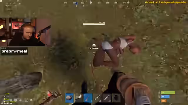 11:51:38Zuerst wird die Notwendigkeit einer neuen Werkbank diskutiert, da eine vorhandene AK nicht repariert werden kann. Das Fehlen eines Teammitglieds wird kritisiert. Die Prioritäten liegen auf dem Sammeln von Ressourcen wie Scrap, Stein und Holz. Die Werkbank selbst muss erst erforscht werden, da sie Level 3 voraussetzt. Der Streamer plant, Materialien zu farmen und bittet um Unterstützung, um die Grundlage für den Aufbau der neuen Werkbank zu schaffen.