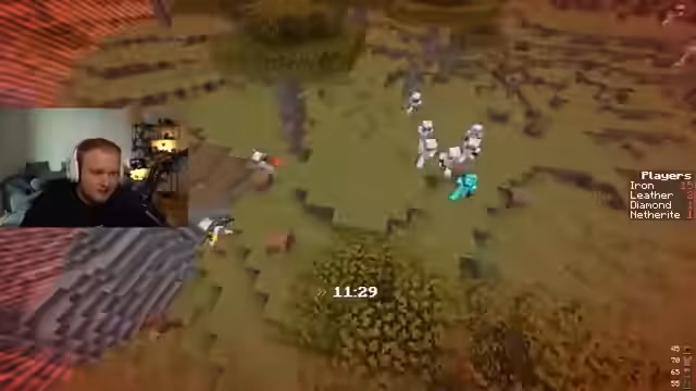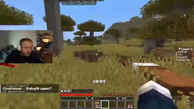 01:04:47Die angekündigte Minecraft-Challenge beginnt. Alle Spieler sind auf dem Server, und die Teams werden zugewiesen. Der Streamer landet im 'Holz-Team', welches als das schwächste gilt und die meisten Mitglieder hat. Er beschreibt die Ausgangslage: das Holz-Team hat nur Holzbretter und Lederrüstungen zur Verfügung, während Diamant- und Netherite-Teams deutlich bessere Ausrüstung haben. Die ersten fünf Minuten dienen dem Sammeln von Ressourcen. Der Startschuss für den Battle steht unmittelbar bevor, und die Dynamik im Spiel muss sich erst entwickeln.