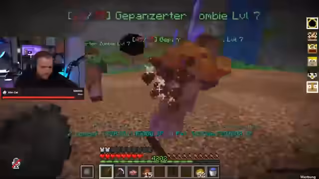 00:05:35Es gibt eine neue Dungeon-Ebene mit Zombies, die mehr Combat XP geben und neue Rüstung droppen. Der nächste Villager kommt am Freitag. Der Stream dient dazu, Combat Level zu leveln und die neue Ebene zu erkunden, da abends Champions League geschaut wird. Bayern gegen Inter war unverdient, aber Harry Kane hat eine Chance vergeben. Thomas Müller hat ein Tor gemacht, aber es hat nichts gebracht. In der neuen Ebene gibt es gepanzerte Zombies, die mit zwei Schlägen besiegt werden können und jedes einzelne Lederteil droppen. Die Zombies machen Ultra-Damage und man ist Two-Hit. Ziel ist es, Schwert, Helm, Hose und Schuhe zu bekommen. Die Chessplate wurde bereits off-stream erfarmt.