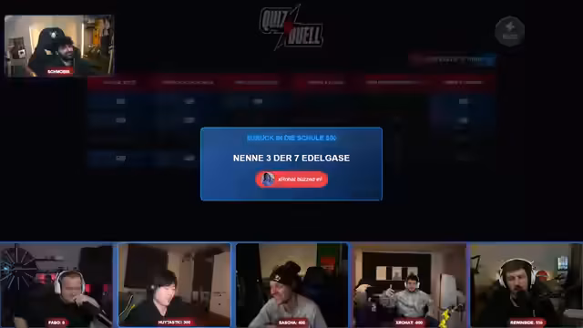 07:54:04Der Stream beginnt mit einem Quiz-Spiel, bei dem die Teilnehmer nacheinander verschiedene Kategorien auswählen. Es gibt unterschiedliche Schwierigkeitsgrade: 100 Punkte für einfache Fragen und 500 für schwierigere. Das Spiel wird über ein Online-Overlay gespielt, das eine Teilnehmerliste, Buzzertasten und Punktestände anzeigt, was eine technische Herausforderung darstellt und zu mehreren Verbindungsproblemen führt. Die Streamer müssen sich erstmal in das einloggen und die Funktionsweise des Overlays klären, bevor es richtig losgehen kann. Der Streamer betont, dass manche Fragen kreativ interpretiert werden können, solange sie eindeutig sind.