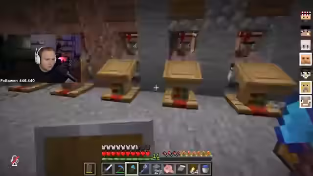 01:38:47Der interne Konflikt spitzt sich weiter zu. Matze fordert Schradin auf, sich mit Diamanten zu entschuldigen und droht mit einem Zinssystem für die Rückzahlung. Die interne Zerrissenheit des Teams wird deutlich, als der Streamer über seine Verärgerung über die mangelnde Disziplin spricht. Gleichzeitig versucht der Streamer, seine Basis weiter auszubauen und sucht nach effizienten Methoden, wie z.B. durch den Handel mit Villagern an Ressourcen wie Smaragde und Büchern zu kommen, um seine Ausrüstung zu verbessern und für eine Konfrontation gerüstet zu sein.