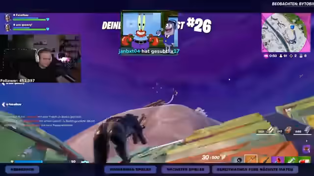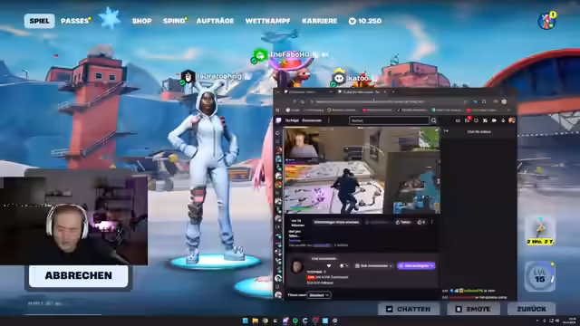 00:07:10Nach der Auslosung werden Fabo und Laura dem Pro Kato zugeteilt, den Chat und Fabo als starken Spieler einschätzen. Sie besprechen Katos Rolle, der als „Pro“ nur limitierte Waffen nutzen darf. Laura hat noch ein laufendes Fortnite-Update, was die Vorbereitung verzögert. Fabo analysiert Gegnerteams wie Noreax/Mia und Heystanny/MBK, während er die Bedeutung des Preisgelds hervorhebt: Pro Win gibt 450€, ab Platz 10 gibt es Earnings. Gleichzeitig wählt Fabo den viralen Kim-Kardashian-Skin für bessere Tarnung.