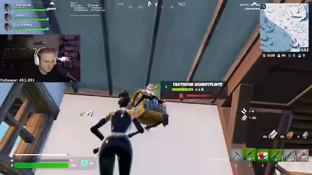 01:10:23Das Team um Fabo, Laura Roehrig und Kato bereitet sich auf das 20.000€ Fortnite-Turnier vor. Nach dem Einladen in das Custom-Lobby diskutieren sie Landing-Spots, Loot-Routen und mögliche Strategien. Dabei fällt die Wahl auf ein abgelegenes Haus mit guter Loot-Ausstattung. Parallel thematisieren sie technische Aspekte wie den richtigen Custom-Key-Eingang und die Haut-Auswahl (Kim Kardashian-Skin). Zwischendurch gibt es Entertainment-Einlagen wie Diskussionen über den Jake Paul vs. Anthony Joshua-Kampf.