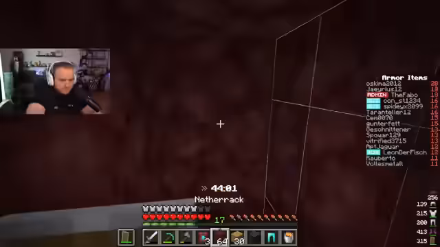 00:58:06Die Diamantsuche gestaltet sich schwierig und zeitaufwendig, da die Spieler nur einzelne Klüppchen anstatt großer Adern finden. Dies verlangsamt das Vorankommen erheblich. Der Streamer fokussiert sich neben Diamanten auch auf das Sammeln von Gold in Bastionen und das Suchen nach dem wichtigen Netherite-Upgrade-Template. Auch die Position der anderen Spieler im Ranking wird im Auge behalten, während die teure und aufwendige Netherit-Rüstung noch aussteht. Der Tod im Nether und der anschließende Wiedereinstieg sind ständige Risiken.