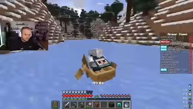 01:41:10Nach langer, erfolgloser Suche in einem unfruchtbaren Schneebiom gelingt ein Durchbruch in ein Mesa- und Savannenbiom. Hier findet der Streamer auf einmal alles Nötige: Schafe, Kühe, ein Dorf mit Betten und sogar einen Lavasee. Dieser Fund markiert einen Wendepunkt und ermöglicht eine beschleunigte Fertigstellung der Rüstungen.
