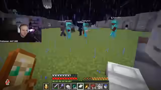 07:13:20Technische Störungen führen zu Server-Abstürzen, die jedoch als temporär eingestuft werden. Der Bau von Wänden und der XP-Farm wird nach einem Neustart fortgesetzt, inklusive Reparatur von Rüstungen und Verteilung von Ressourcen. Der Stream endet mit Dank an langjährige Subs (z. B. 87 Monate) und letzten Bauanpassungen, während interne Spannungen über geklaute Gegenstände diskutiert werden.