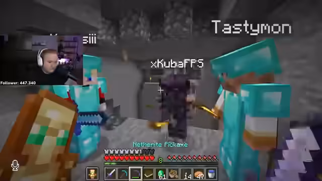 01:07:33Die Teilnehmer beschließen, antiken Schrott für Rüstungs-Upgrades zu suchen. Dafür begeben sie sich auf die spezifische Höhe 15 im Nether. Es entstehen Konflikte innerhalb der Gruppe, während die Suche nach dem wertvollen Material beginnt. Die Gruppe versucht, trotz interner Spannungen und versehentlicher Angriffe aufeinander, koordiniert zu graben und Sprengungen vorzubereiten, um effizienter Ressourcen zu finden.