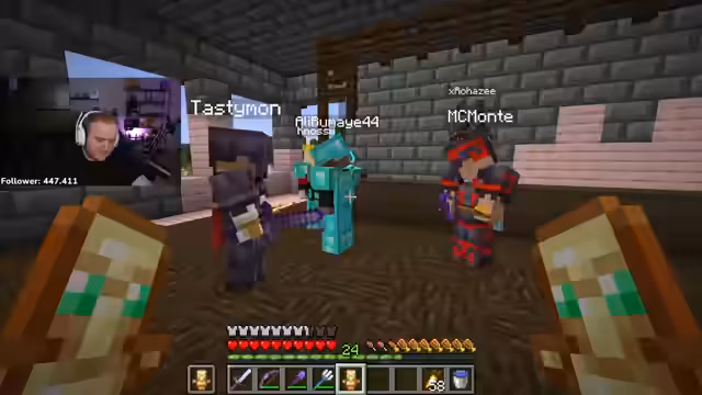 08:37:19Die Gruppe kümmert sich um Ressourcen wie Holz, Setzlinge und Knochenblöcke für den Baumwuchs im Tal. Es werden Tipps zur effizienten Ressourcennutzung gegeben, während gleichzeitig gesundheitliche Themen wie Zahnschmerzen und deren Auswirkungen auf Leistung diskutiert werden. Pläne für PvP-Training mit Tasty werden erwogen, um Verteidigungsfähigkeiten zu verbessern. Der Stream endet mit Vorbereitungen für die Nacht und weiteren Ressourcenbeschaffungen.