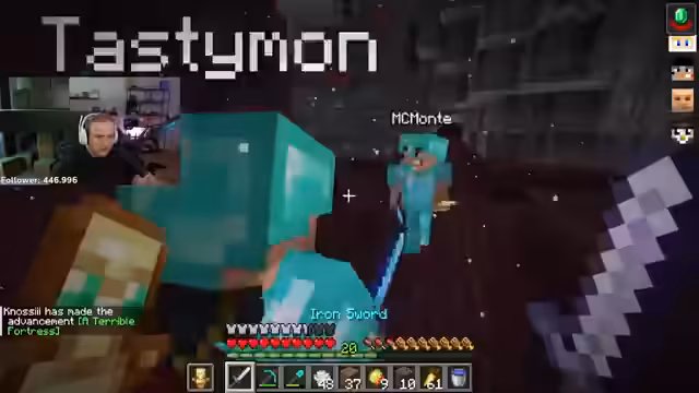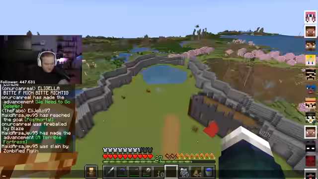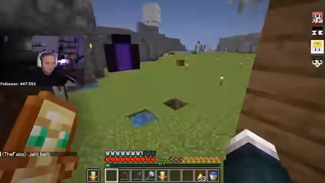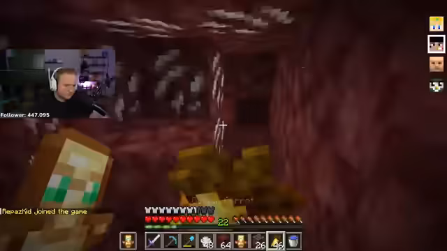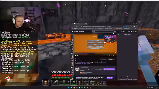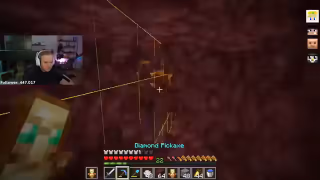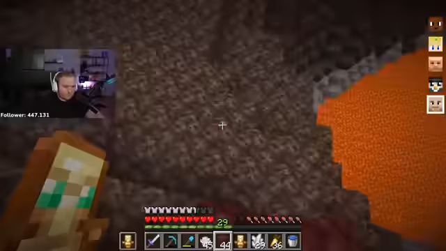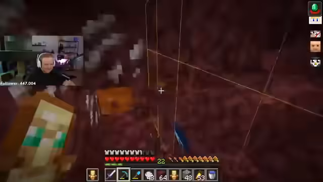 00:34:11Vor dem Nether-Portal erhält der Streamer eine seltsame Amazon-Lieferantennachricht. Nach Diskussionen über Pferde und Sattel-Crafting wird das Nether-Portal aktiviert. Die Gruppe betritt die "Hölle", wo sie sofort auf Gefahren wie Lava, Ghasts und TNT-Explosionen trifft. Es kommt zu Todesfällen (z. B. Jens) und chaotischen Überlebenskämpfen. Die Suche nach einer Festung und wertvollen Ressourcen wie Netherite beginnt, während die Gruppe versucht, sich in der gefährlichen Umgebung zu orientieren und gemeinsam gegen Feinde wie Hand of Blood zu kämpfen.