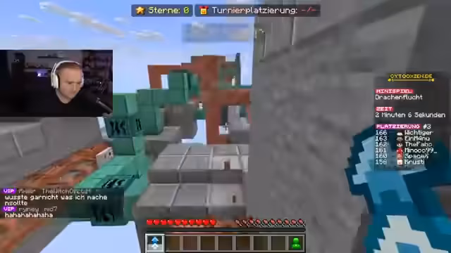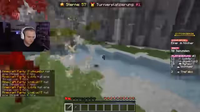 01:50:03Im weiteren Verlauf der Runde finden verschiedene Minispiele statt, bei denen die Spieler um Würfel und Münzen kämpfen. Ein Höhepunkt ist das Spiel 'Team T-Run', bei dem Fabo in einem starken Team mit Lukas spielt. Trotz guter Teamzusammenarbeit und strategischem Vorgehen werden sie von anderen Teams angegriffen. Trotzdem gelingt es Fabo, als Erster das Ziel zu erreichen. In einem späteren Minispiel erzielt er beeindruckende acht Kills, was seinen Status als 'Minecraft Allrounder' unterstreicht, da er sowohl PvP als auch strategisches Gameplay meistert.