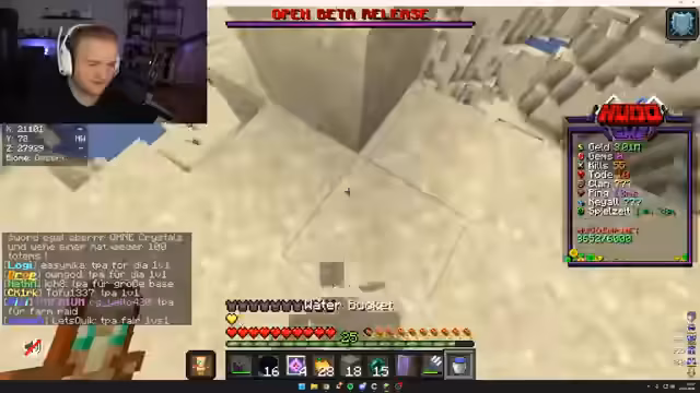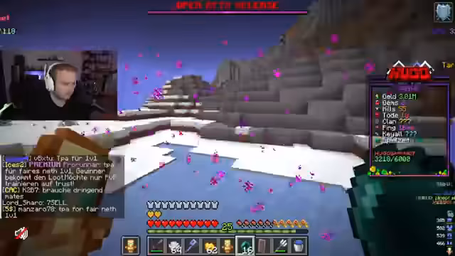 00:06:47Der Streamer loggt sich in das Hugo SMP ein, um die aktuelle Lage zu erkunden. Es wird eine Farm geradet, was den Streamer motiviert, selbst nach Loot und anderen Spielern zu suchen. Die Gespräche drehen sich viel um das Cheaten auf dem Server, insbesondere X-Ray und die Minimap. Der Streamer äußert seine Skepsis gegenüber Clans, da er diese als zu stressig ansieht, und konzentriert sich stattdessen auf das PvP-Training und das Jagen von einzelnen Spielern.