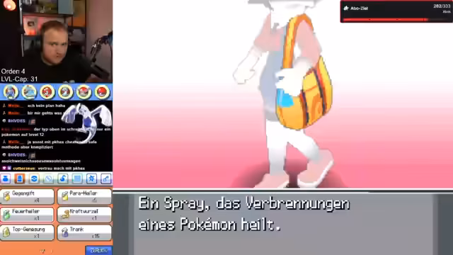 03:19:36Während des Spielstaus stellt der Streamer fest, dass die Pokémon nur sehr langsam leveln und seine Teamstärke für den anstehenden Kampf gegen den Arenaleiter ungeeignet ist. Er entscheidet, die „Sonderbonbons“ zu nutzen, um Pokémon schneller aufzuwerten. Nach mehrmaligen vergeblichen Versuchen, den Cheat-Code im Emulator einzugeben, wird er zunehmend frustriert und äußert den Verdacht, es könne an der Tastenbelegung liegen. Ein Zuschauer gibt entscheidende Tipps, die schließlich zum Erfolg führen und die fehlenden Gegenstände hinzufügen.