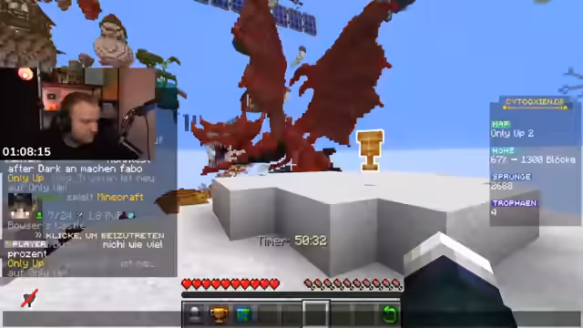 01:49:10Nach dem erfolgreichem Only-Up-Lauf beginnt der Streamer, über zukünftige Inhalte zu sprechen. Er erwähnt, dass er die Only-Up-Map nochmal unter einer Stunde wiederholen will. Des Weiteren gibt er an, dass er Pokémon Soul Silver wieder aufnehmen möchte. Er erwähnt auch, dass er Bock auf Fortnite hat, da er Ranked spielt und kürzlich den Battle Pass durchgemacht hat. Anschließend startet er einen neuen Versuch in der Only-Up-Map, um seine Zeit zu verbessern.