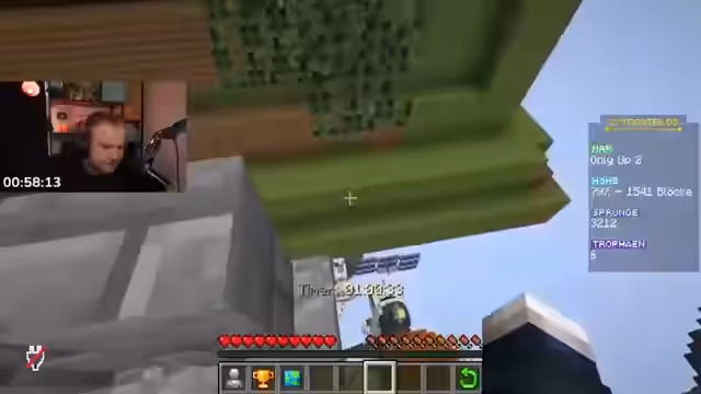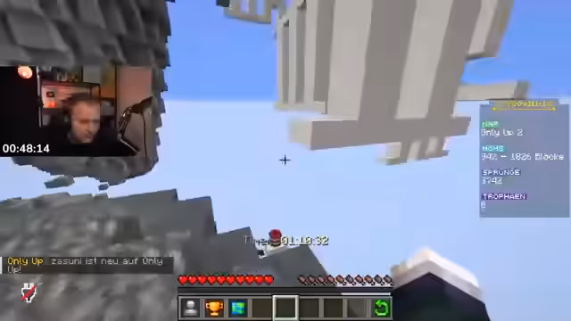 00:28:51Während des Spiels werden die ersten Herausforderungen deutlich, und der Streamer zeigt seine Frustration über missglückte Sprünge. Er spricht offen über seine Höhenangst in Minecraft, die seine Leistung beeinträchtigt, besonders wenn er sich über dem Void befindet. Obwohl er nach 18 Minuten bereits bei 18 Prozent ist, zweifelt er an seiner Fähigkeit, das Ziel in der angesetzten Zeit zu erreichen und erwähnt, dass er 'washed' also aus der Übung sei.
