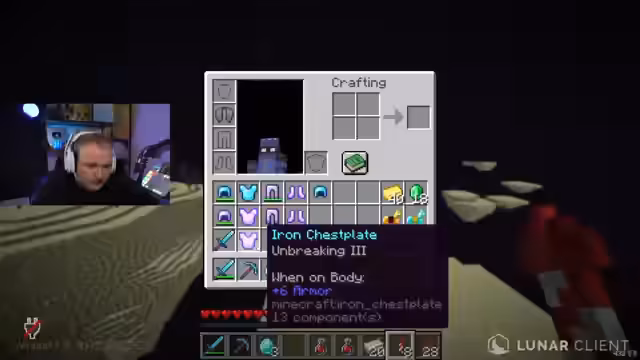 02:38:29Die Farming-Phase beginnt im End und der Streamer fliegt zu einer End City, wo er sofort guten Loot findet. Er ist sehr zufrieden mit seinem Rüstungsset, das er zusammensetzt, inklusive Feather Falling 4-Schuhe und einem Zweihänder. Obwohl die Farmingzeit noch läuft, ist er bereits sehr gut ausgerüstet und überlegt, ob es sich überhaupt lohnt, weiter Loot zu suchen, da die Inventare später ständig getauscht werden. Er fliegt weiter, um eine zweite End City zu finden, ist aber unglücklich, als er sie nicht findet.