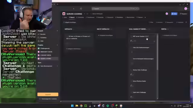 01:43:36Nach dem Event wurde über die zukünftige Nutzung des Minecraft-Servers gesprochen. Der Streamer skizzierte den Plan, mehrere Server für die Community zu schaffen, auf denen Abonnenten Challenges starten können, sobald genug Spieler online sind. Um die Organisation zu verbessern, hat er ein System zur Ideenfindung für Server-Inhalte implementiert, das von seinem Teammitglied MG umgesetzt werden kann. Er erwähnte auch sein Vorhaben, den Server auf die neueste Minecraft-Version zu aktualisieren und einen Voice-Chat einzuführen.