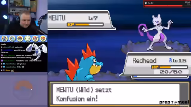 04:03:58Ein zufälliges Mewtwo-Encounter findet statt, bei dem der Streamer versucht, das Pokémon zu fangen. Er nutzt Schlafpuder und Konfusion, um Mewtwo zu schwächen, doch aufgrund eines Missverständnisses über die Wirkung einer Attacke, tötet er Mewtwo versehentlich. Der Streamer ist frustriert, da Mewtwo nun für den Rest des Runs nicht mehr verfügbar ist. Er beschließt, weiterzuleveln und neue Encounters zu suchen.