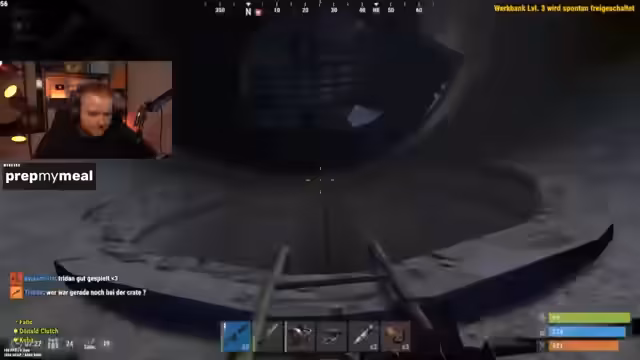07:59:10Der Streamer und Kuba sind schon lange online. Es wird gewartet, bis die Kiste offen ist. Der Streamer erhält eine L96 mit 16x Zoom, die als beste Sniper überhaupt bezeichnet wird. Es wird auch eine German Pipe gefunden. Der Streamer bedankt sich bei Tapsi. Es wird besprochen, dass die Waffe in der Basis bleiben soll und nur von dort aus gesnipert wird. Kuba stürzt mit dem Heli ab. Es wird beschlossen, morgen auf einen Testserver zu gehen und fliegen zu lernen. Der Streamer wird rausgeworfen, weil er Chef Strobel die Waffe zeigen wollte. Es wird diskutiert, dass der Heli mit schlechtem Holz eingebaut werden soll, damit er nicht geklaut werden kann. Der Streamer kann mit Page Up und Page Down unterschiedlich zoomen. Es wird überlegt, die Zoom-Funktion umzubinden. Es wird diskutiert, ob es Bullet Drop gibt. Es wird vorgeschlagen, Kuba umzubinden. Der Streamer hat seine MP5 verloren. Es wird überlegt, ein Windrad zu bauen, wofür ein Kabel benötigt wird. Es wird besprochen, dass acht Computer und acht Laptops für die Turrets benötigt werden.
