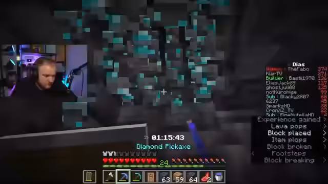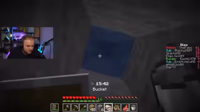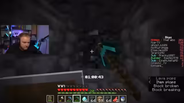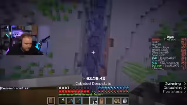 02:57:32Nachdem die aktuelle Höhle weitgehend abgebaut ist und die Diamantenausbeute stagniert, führt der Streamer eine neue Taktik ein: das sogenannte 'Resetten'. Er platziert sein Bett an einer strategischen Stelle, stirbt absichtlich und kehrt sofort an diesen Ort zurück, anstatt am ursprünglichen Spawn-Punkt. Mit diesem Manöver kann er die bereits durchsuchten Bereiche umgehen und effizienter neue, unberührte Höhlensysteme ansteuern. Gleichzeitig wird sein Vorsprung auf den Diamanten von Konkurrenten '6237' und 'lolnope' immer kleiner.