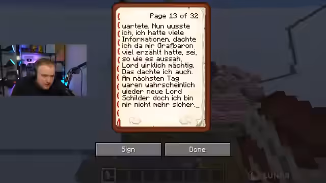 00:16:41Der Streamer beginnt, sich zu den im Discord geteilten Koordinaten zu teleportieren, um die verschiedenen Basen und Bauwerke anzusehen. Er entdeckt eine Basis mit einem "Ameisen-Vibe" und eine Hühnerfarm. Es werden auch zerstörte Basen von Griefing-Opfern gefunden. Der Streamer stößt auf Bikini Bottom und die Stadt Angelbach, die scheinbar eine eigene Lore entwickelt hat. Es wird die Geschichte von Angelbach und einem Charakter namens Lord entdeckt, die in einem 32-seitigen Buch festgehalten ist. Die Lore beinhaltet Griefing, Intrigen und die Aufdeckung von Lord's Identität. Der Streamer findet einen Schrein für Lord und ist überrascht über das Ausmaß der Storyline, die sich innerhalb von sieben Tagen entwickelt hat. Trotz der Komplexität der Lore lobt er die Kreativität der Community.