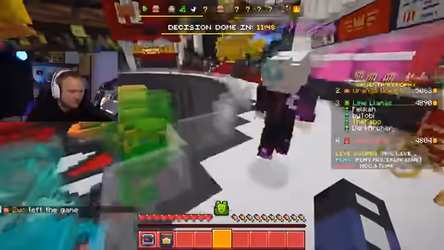 02:21:28In 'Battlebox' geht es um PvP-Kämpfe auf einer Map mit Hindernissen. Das Team beginnt vorsichtig und defensiv, verteidigt eine Seite und baut Blöcke zum Schutz. Nach anfänglichen Erfolgen stellt das Team fest, dass die Gegner aggressiv in die Mitte pushen. Das Team passt seine Strategie an, konzentriert sich mehr auf das PvP und übernimmt die Kontrolle über das Spiel, indem es mehrere Gegner eliminiert und wichtige Runden gewinnt.