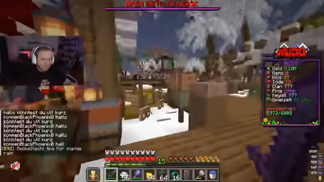 03:13:18Das geplante Duelle gegen Goaty findet im Spawn-Bereich statt und wird mit Totem Pops als Wettkampf-Bedingung durchgeführt. Gleichzeitig muss der Streamer technische Schwierigkeiten mit dem Server-Verbindung und Ping-Problemen lösen. Währenddessen wird ein Spieler namens Gambo erwähnt, der als sehr erfahrener und hochrangiger Spieler gilt. Es wird über die Spieldichte des Servers gesprochen und es gibt Pläne, einen anderen Server (EU-Stray) zu nutzen, da der aktuelle Server nach einer Raids-Attacke instabil geworden ist.