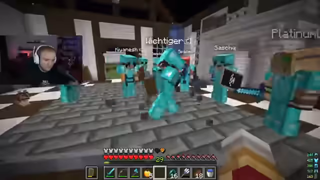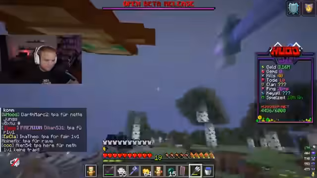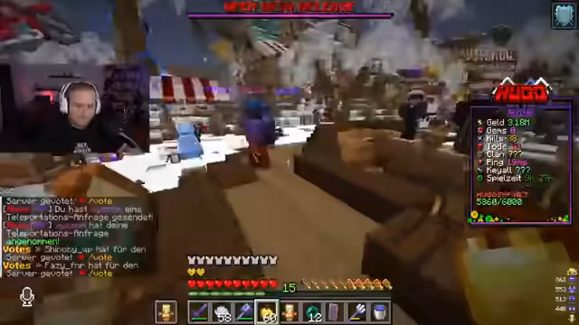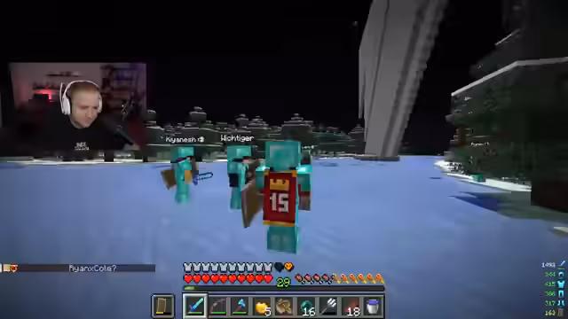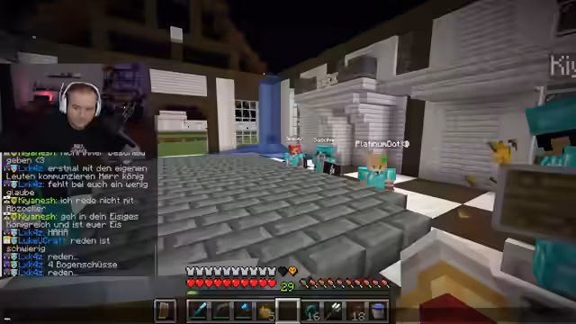 04:33:20Nach mehreren verlorenen Gefechten,包括 eines 1v2- und 2v2-Kampfes, wo er und sein Mate durch Cross-Teams und Crystal-Angriffe getötet werden, sucht er verzweifelt nach Basen. Er erwähnt vergebliche Team-Einladungen und eine 'Minus-Aura', während er Koordinaten vergleicht und erklärt, dass man oft 5.000 Blöcke laufen muss, um eine gute Base zu finden. Gleichzeitig plant er die morgige Agenda: Er wird um 20 Uhr an einem Pokémon-Opening teilnehmen und davor Minecraft Risiko oder Hugo SMP spielen, je nachdem, wie lange die Risiko-Session dauert.