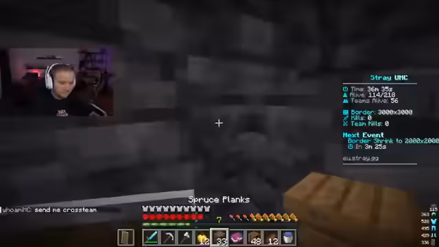 03:26:58Nachdem die Verbindung zum UAC-Server hergestellt ist, bildet der Streamer ein Team mit einem Mitspieler, um die Vorräte für das Event zu sammeln. Es wird ein gemeinsamer Plan für die Item-Ausrüstung entwickelt: eine Mace, Wind Charge, Gap und Enderperlen. Während des Farmens gibt es Diskussionen über die Stärke der gegnerischen Teams und die geringen Gewinnchancen. Der Streamer betont, dass ein Sieg nur durch die Information über die IP-Adresse der Top-Spieler, wie Swite, möglich wäre, um sie gezielt angreifen zu können.